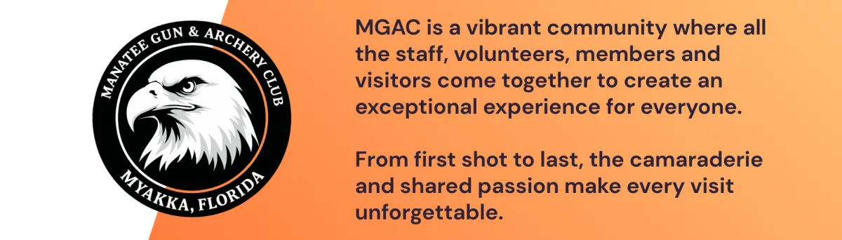 Over the decades, the club expanded from a handful of firing lines into a diverse facility supporting rifle, pistol, shotgun, and archery, while also hosting competitive events and training opportunities. Today, MGAC stands as one of Florida’s most respected shooting clubs; rooted in its tradition of volunteerism and community while continuing to grow with new programs, improved facilities, and a strong membership base that carries forward the founders’ vision.